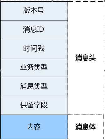 | 消息体 | 业务消息内容 | 内容与业务消息类型相关。见后续业务交互中的消息定义。 | 采用扁平结构方式,取消嵌套结构。 |